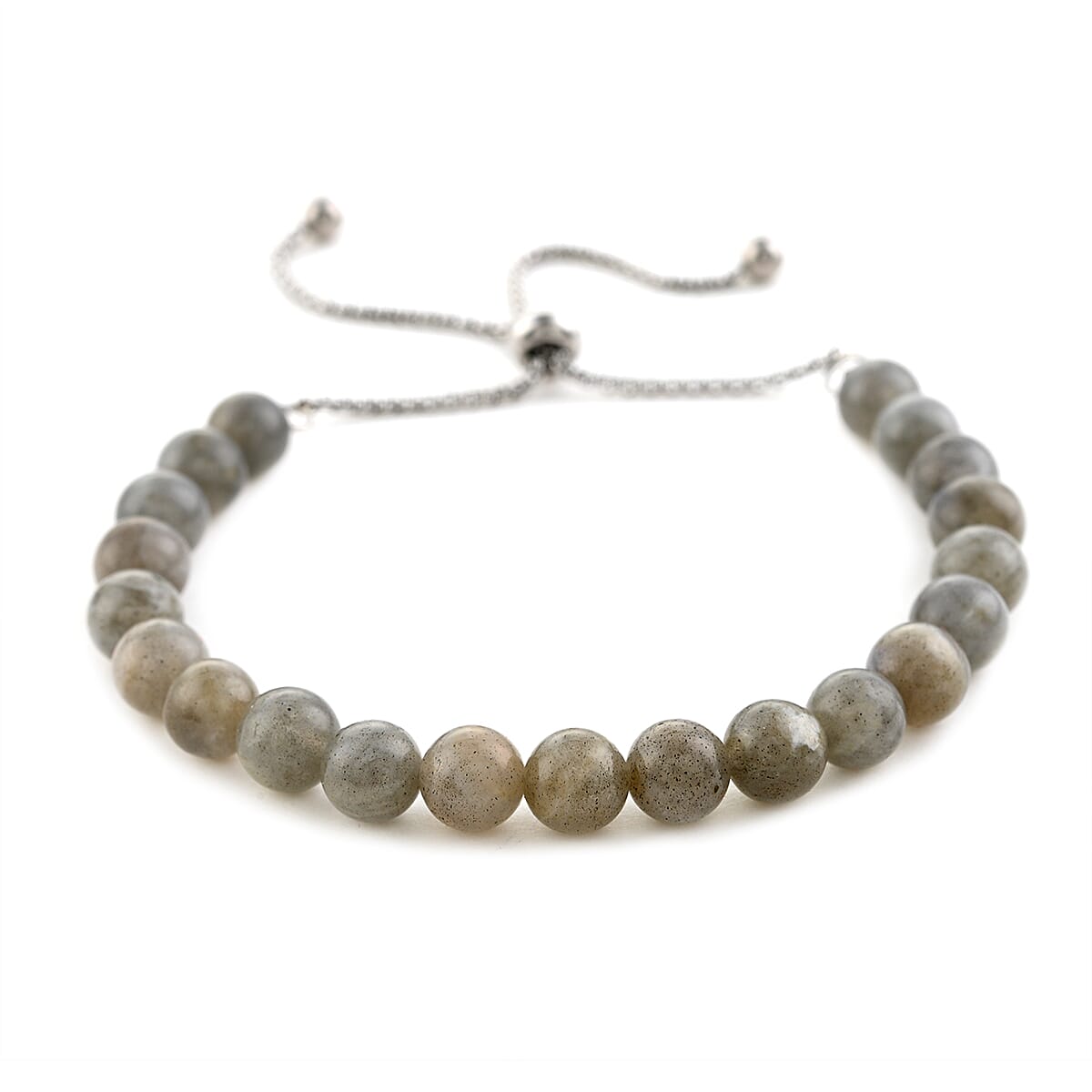 Green Labradorite Beaded Bolo Bracelet in Stainless Steel 6.30 ctw