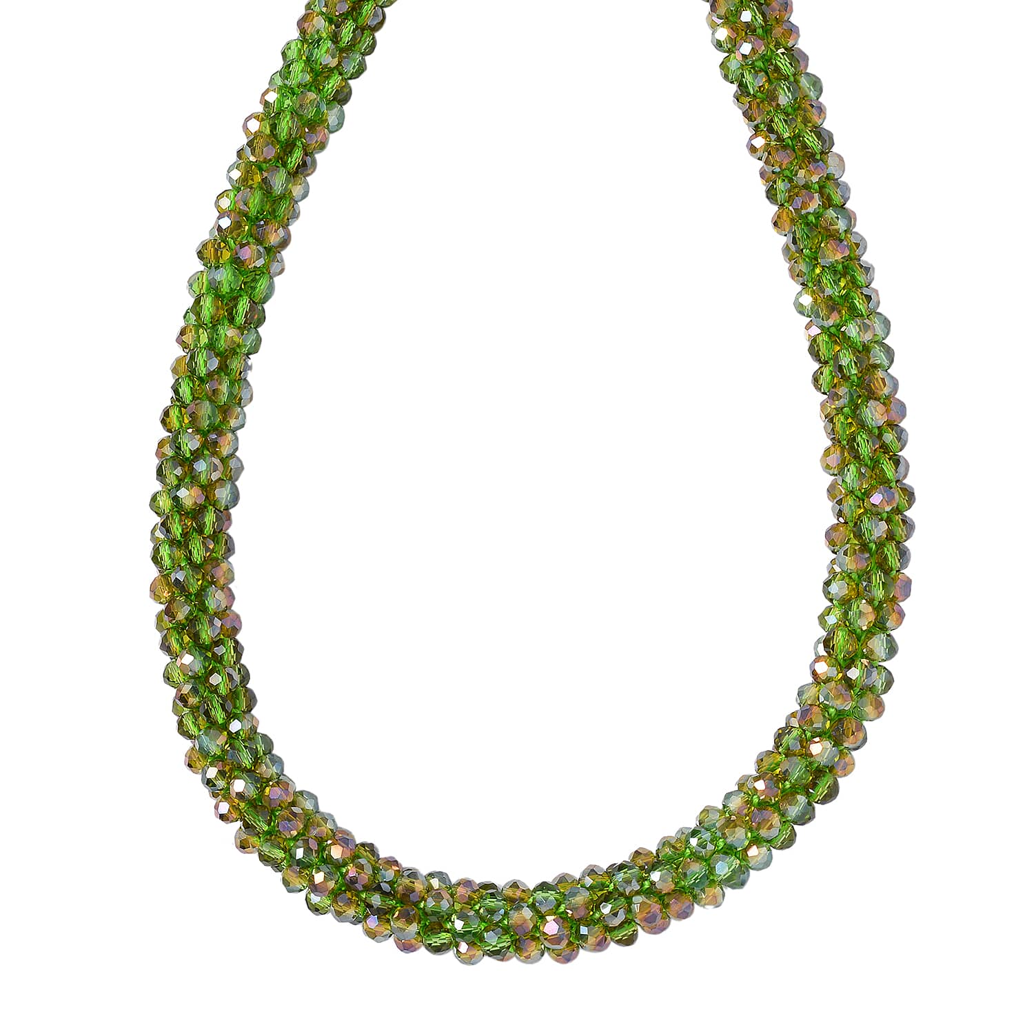 Green Magic Color Glass Beaded Necklace 20-22 Inches in Silvertone