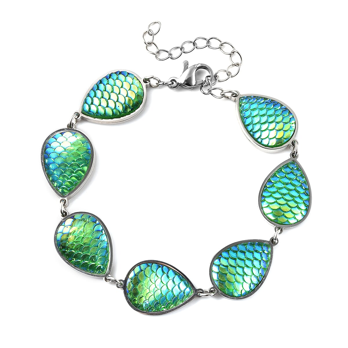 Green Magic Resin Station Bracelet in Stainless Steel (7.75-9.95 In)