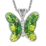 Green Murano Style Butterfly Necklace in Stainless Steel 24 Inches