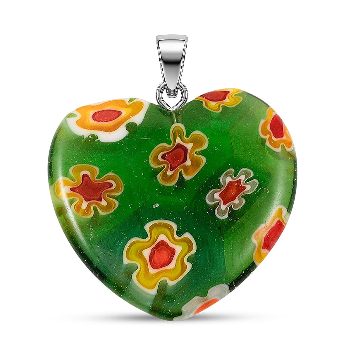 Green Murano Style Heart Pendant in Silvertone with Stainless Steel Necklace (20 Inches)