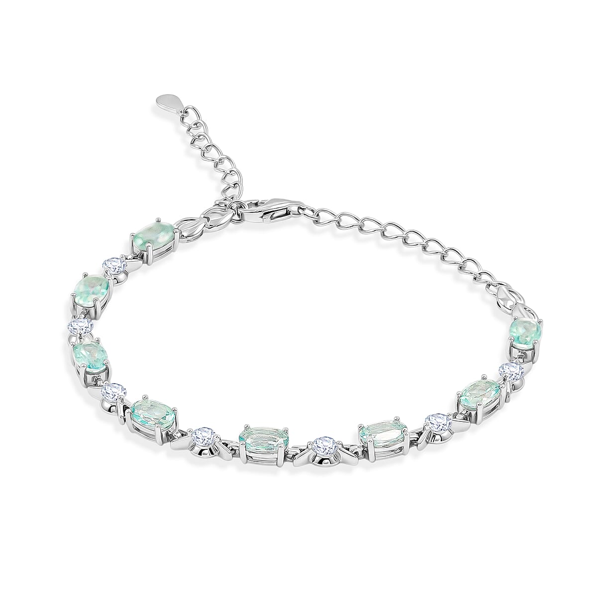 Green Quartz and White Corundum 4.40 ctw Bracelet in Rhodium Over Sterling Silver (6.5-7.5In)