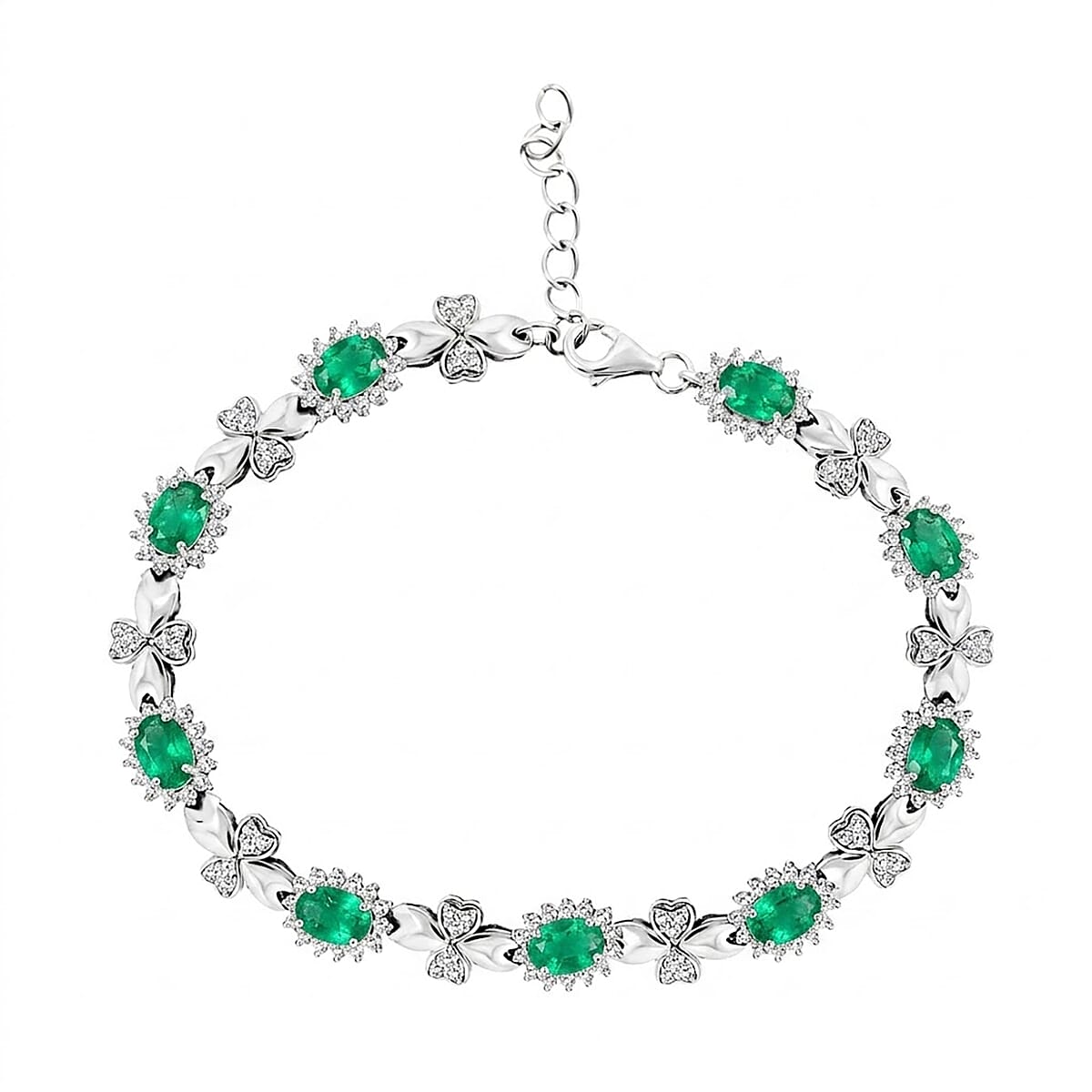 Green Quartz and White Corundum 4.85 ctw Bracelet in Rhodium Over Sterling Silver (7-8In)