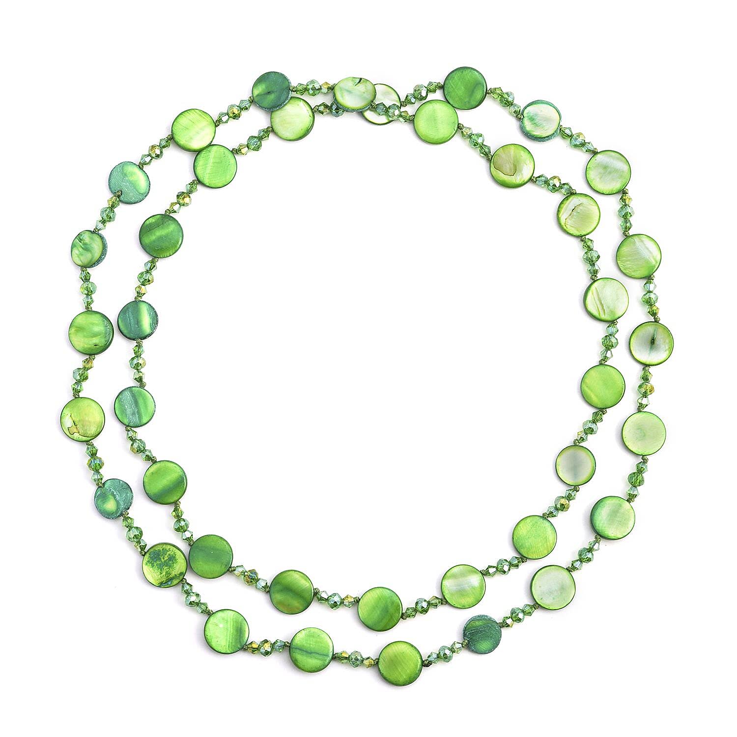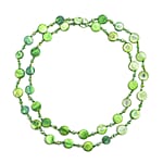 Green Shell Pearl Coin, Green Glass Beaded Necklace 47 Inches