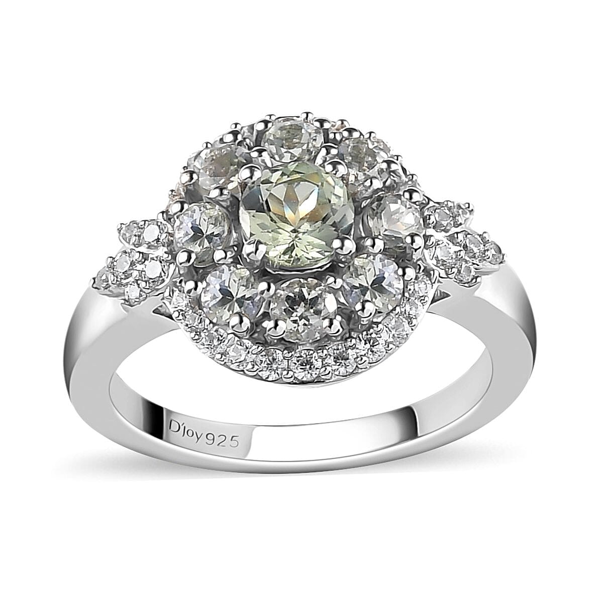 Embrace the allure of our exquisite green tanzanite and natural white zircon ring. This masterpiece combines the enchantment of a floral cluster design with the sophistication of platinum plating over sterling silver. This fancy ring isn't just a piece of jewelry; it's a symbol of elegance designed to captivate and charm. Make a statement of timeless grace and style that resonates with the essence of femininity. This ring for women is not just an accessory; it's a treasure that enhances your everyday moments with a touch of luxury.