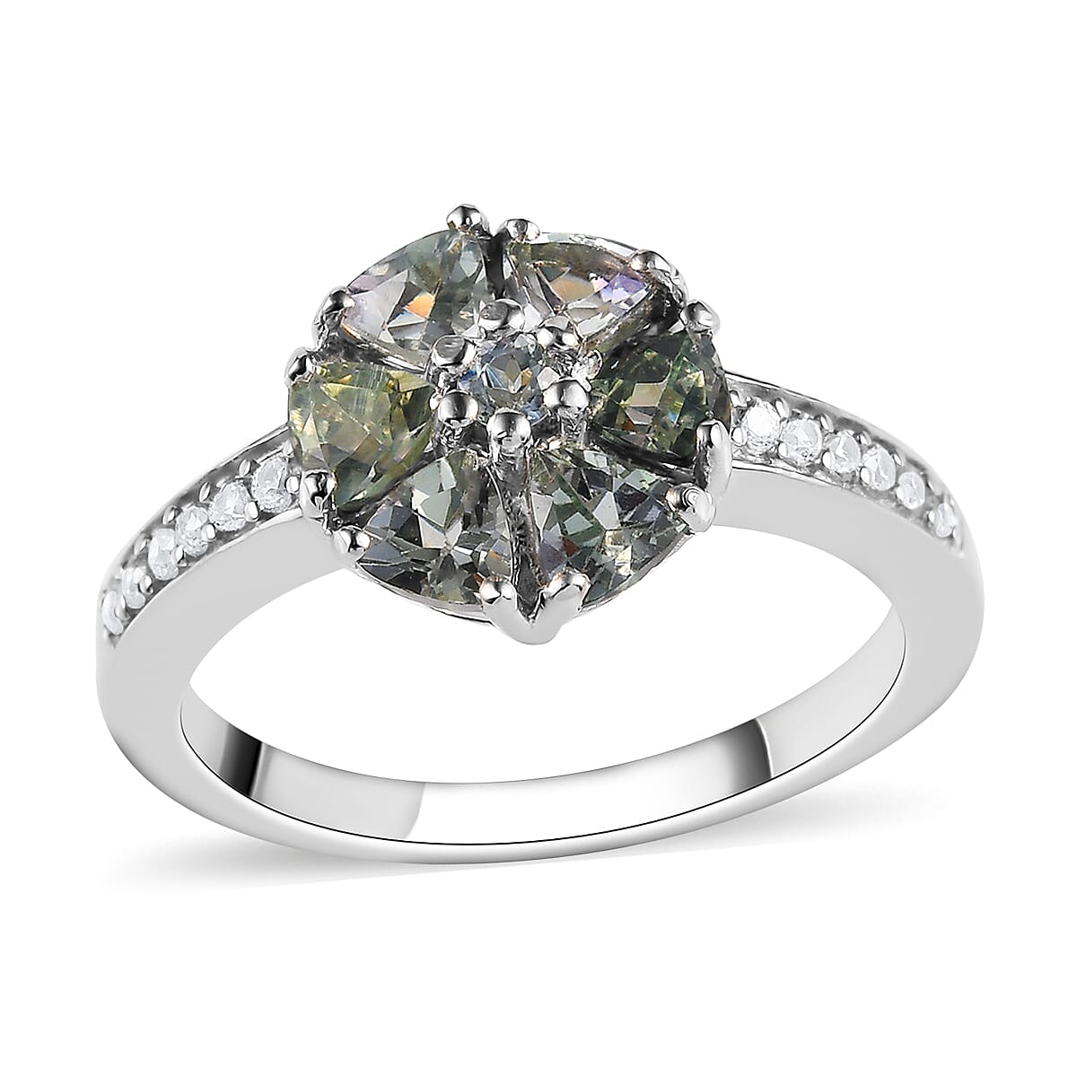 Green Tanzanite and Natural White Zircon Ring in Platinum Over Sterling Silver 1.30 ctw