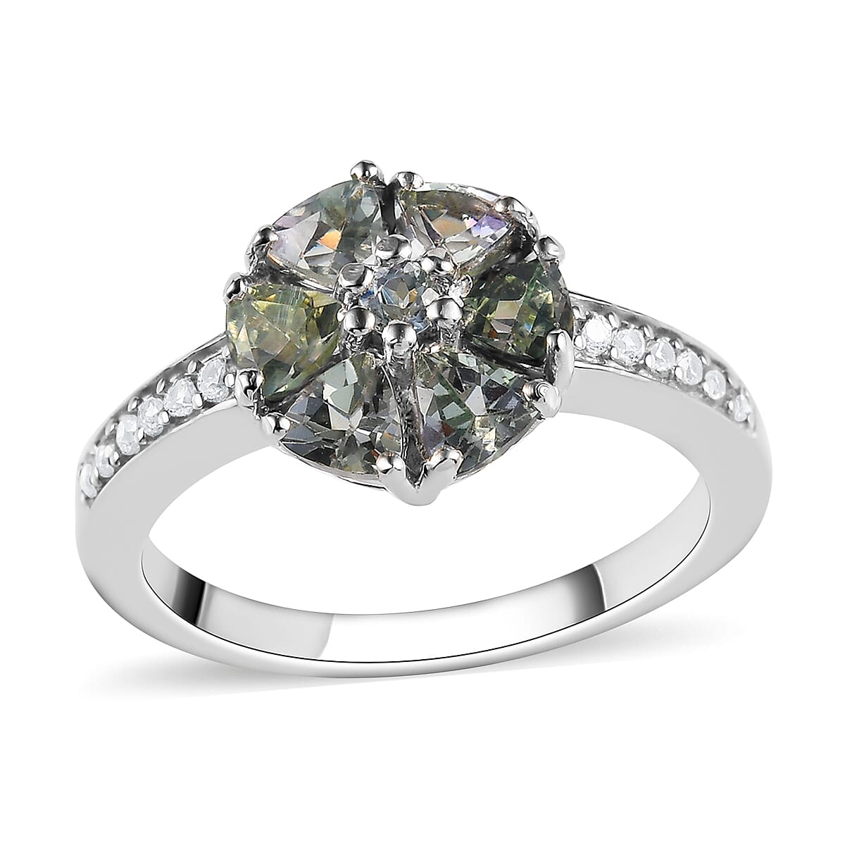 Green Tanzanite and Natural White Zircon Ring in Platinum Over Sterling Silver (Size 8.0) 1.30 ctw