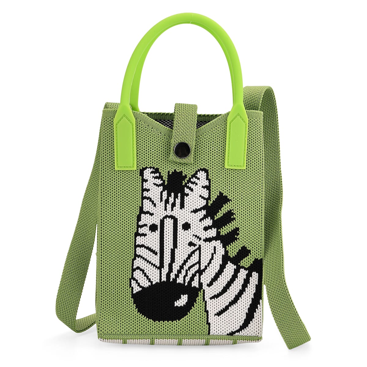 Green with Zebra Print Polyester Crossbody Cellphone Bag