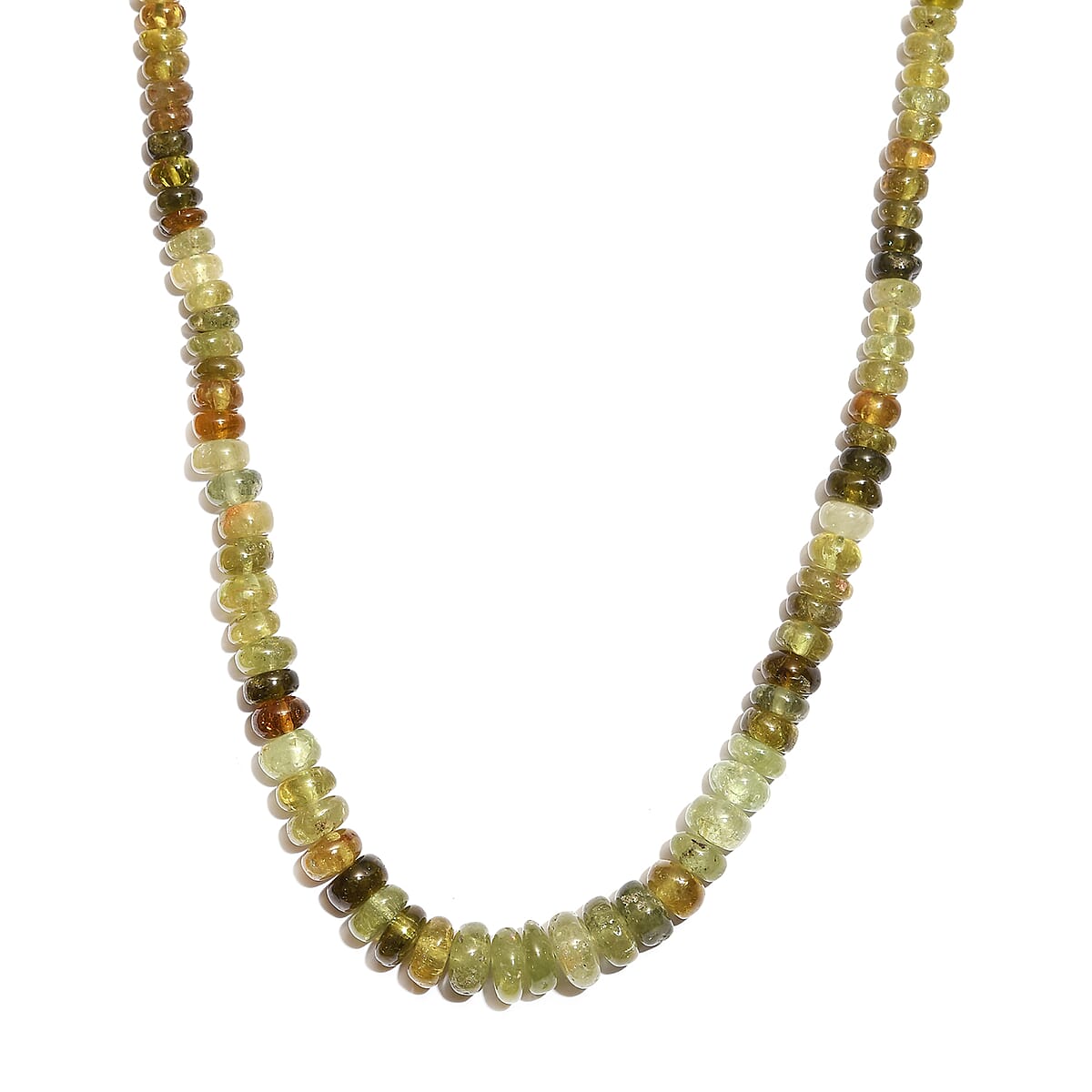 Grossular Garnet Beaded Necklace 18 Inches in Sterling Silver 170.00 ctw