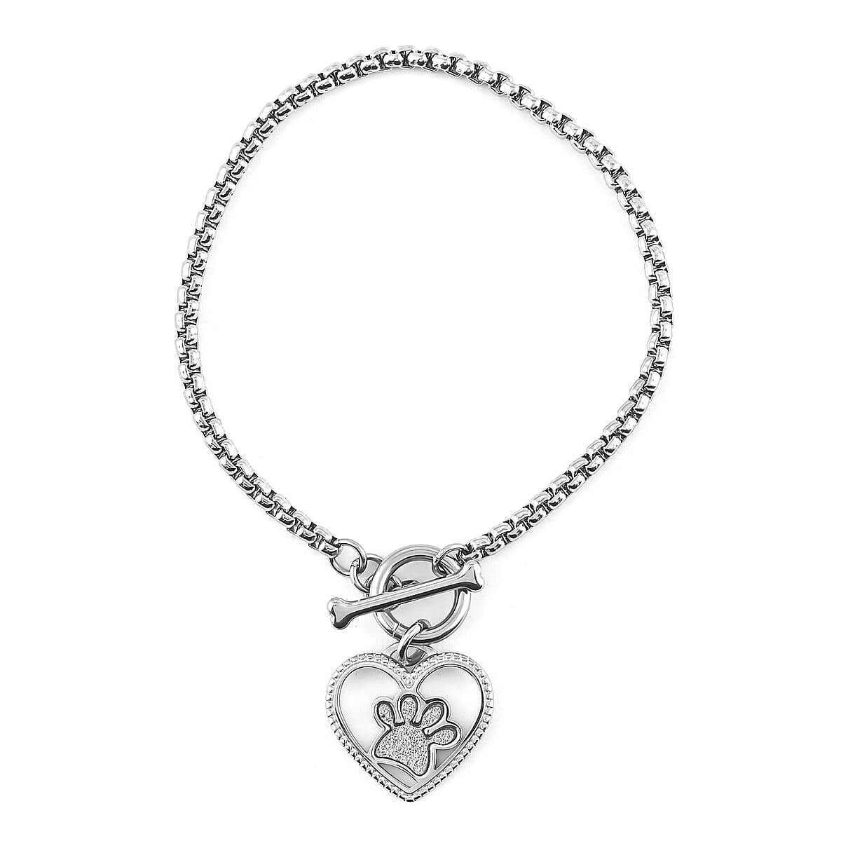 HALLMARK Paw Heart with Silver Glitter Paper Toggle Bracelet in Stainless Steel (7.50 In)