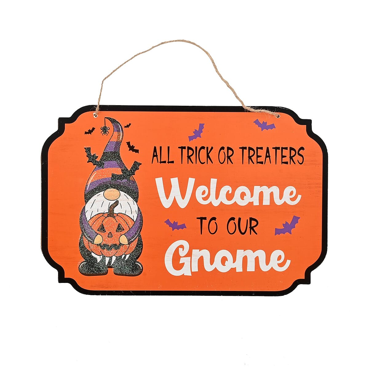 Halloween- All Trick or Treaters Welcome to Our GnomeWall Plaque W/glitter and Twine Rope Hangers