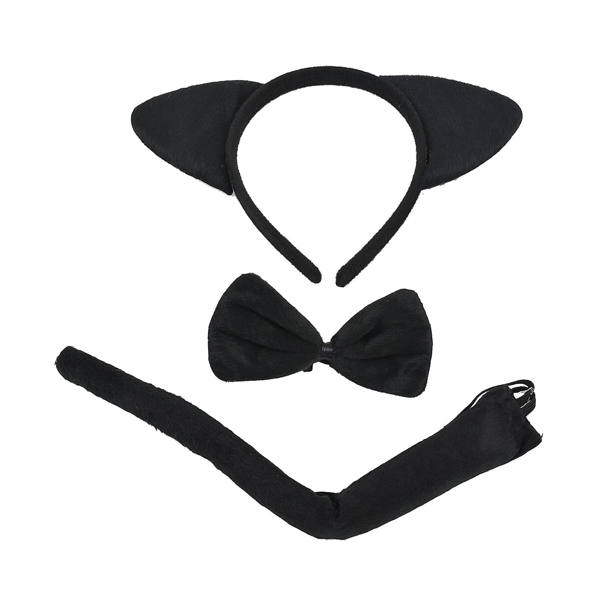 Halloween- Black Cat Costume 3pc Plush set (Includes Ears Headband/bowtie/tail)