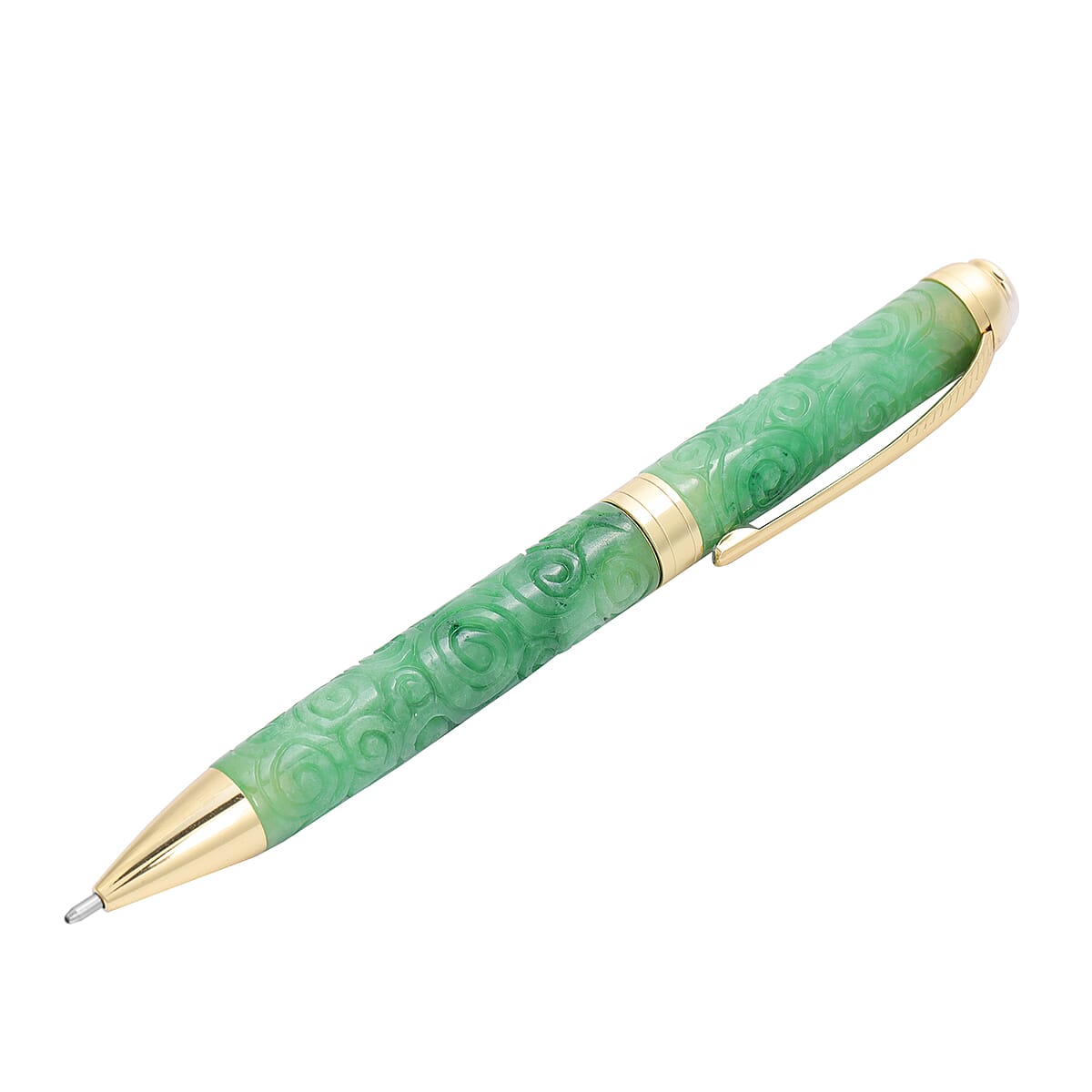 Hand Carved Green Jade Carved Lucky Clouds Ball Point Pen in Goldtone (Approx 208ctw)
