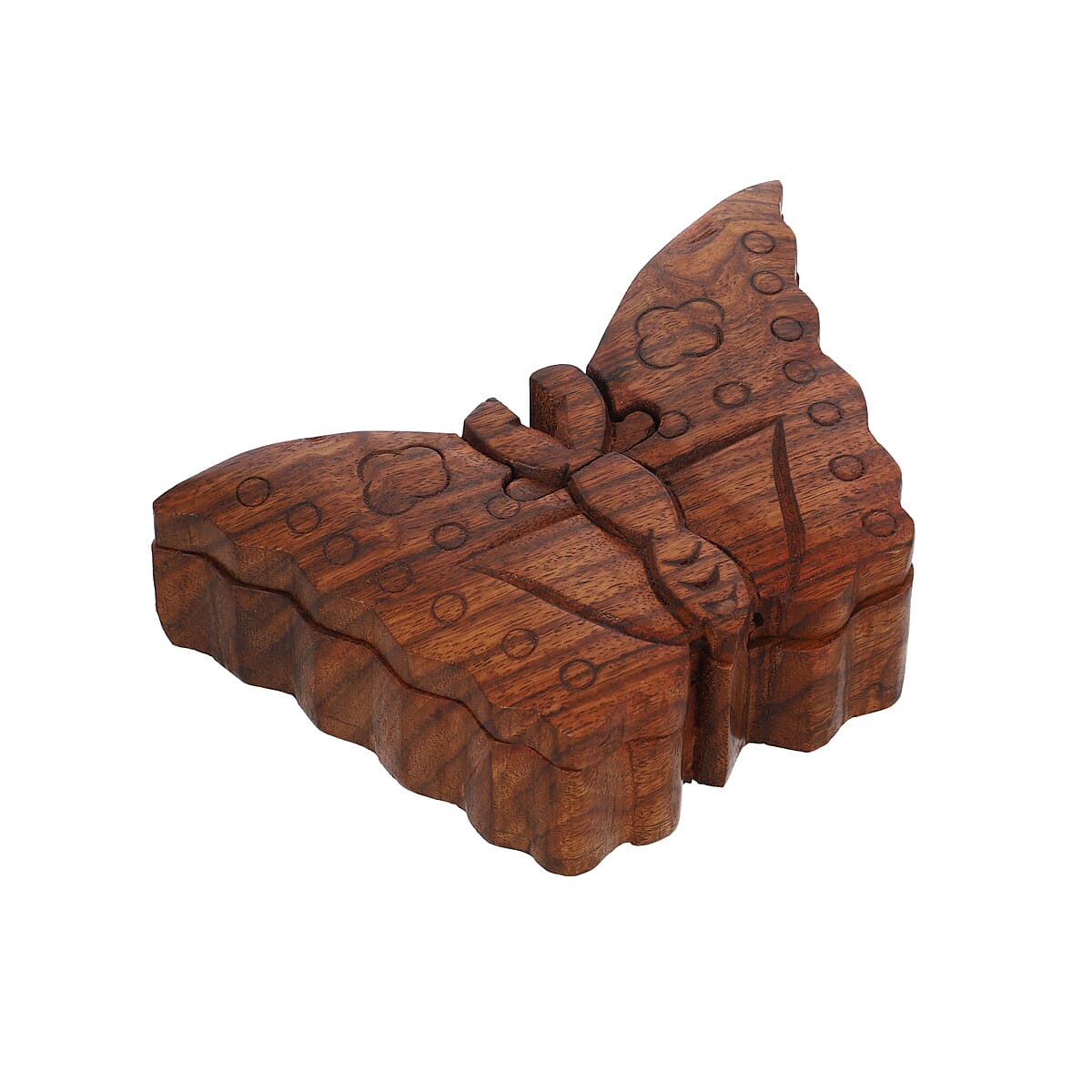 Hand Carved Mango Wooden Butterfly Puzzle Box