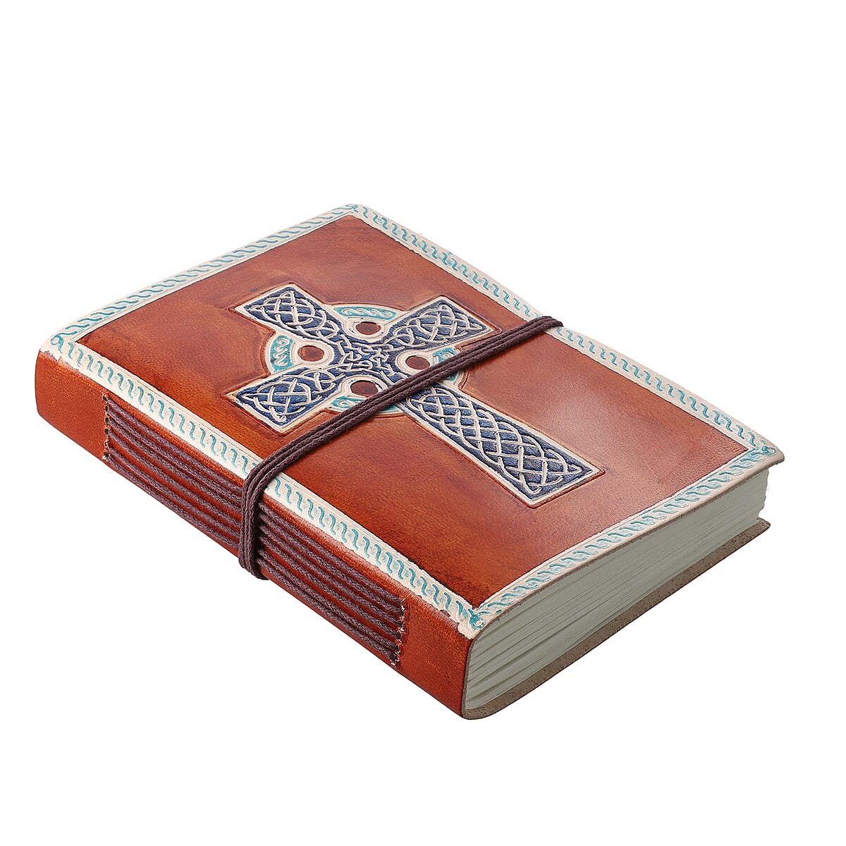 Hand Painted Brown Cross Genuine Leather Journal With Handmade Papers