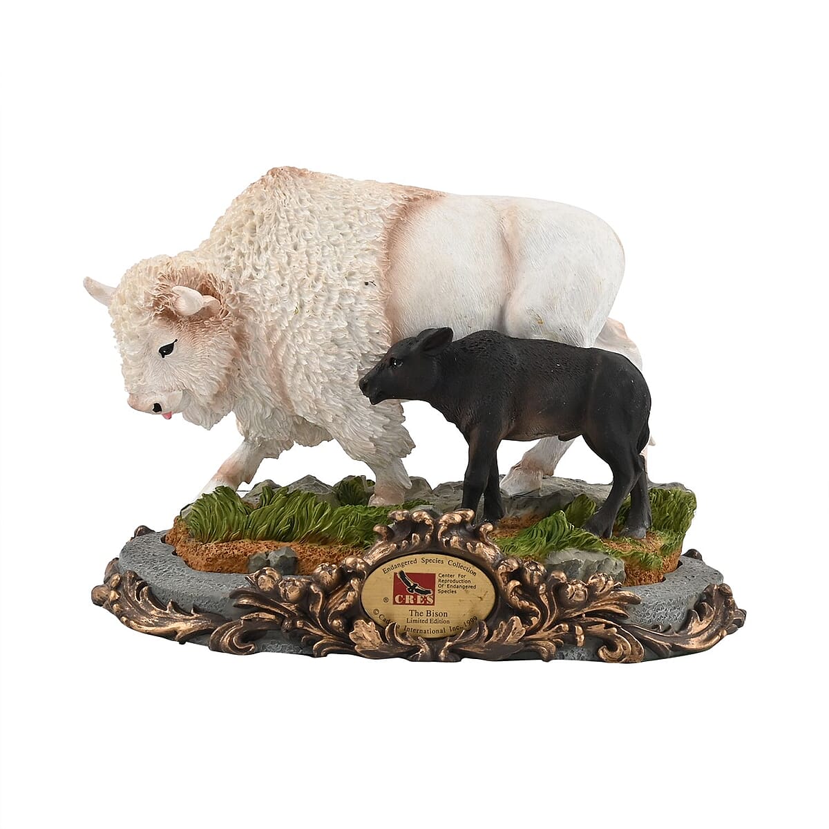 Hand Painted Resin Figurine with Stand – Bison, Miniature Hand Painted Animal Figurine Decor For Tabletop Desk Decoration