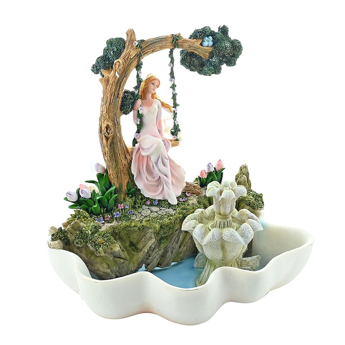 Hand Painted Resin Water Fountain - Lady on Swing with Fountain