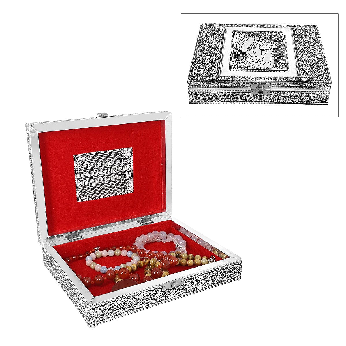 The superior quality aluminum oxidized jewelry box with a beautiful pattern is crafted to perfection. The borders of the jewelry box are ornate with intricate hand-embossed patterns in a timeless design. An exquisite masterpiece that successfully unites art and utility, it's a great pick to store your rings, cuff links, earrings, and more. With velvet lining, it ensures your jewels are protected from dirt, scratches, and tarnish.