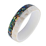 This inlay shell with white resin bangle bracelet combines oceanic elegance with practical durability. The hypoallergenic and sweatproof materials ensure it is both a comfortable and striking accessory.