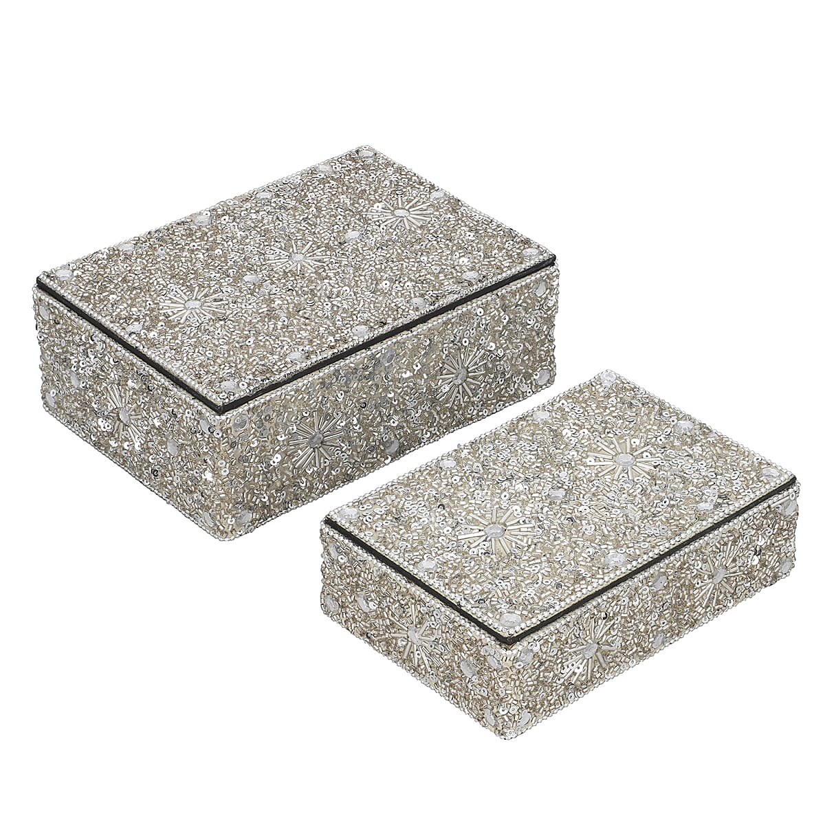 Handcrafted Set of 2 Silver Beaded Decorated Nested Box