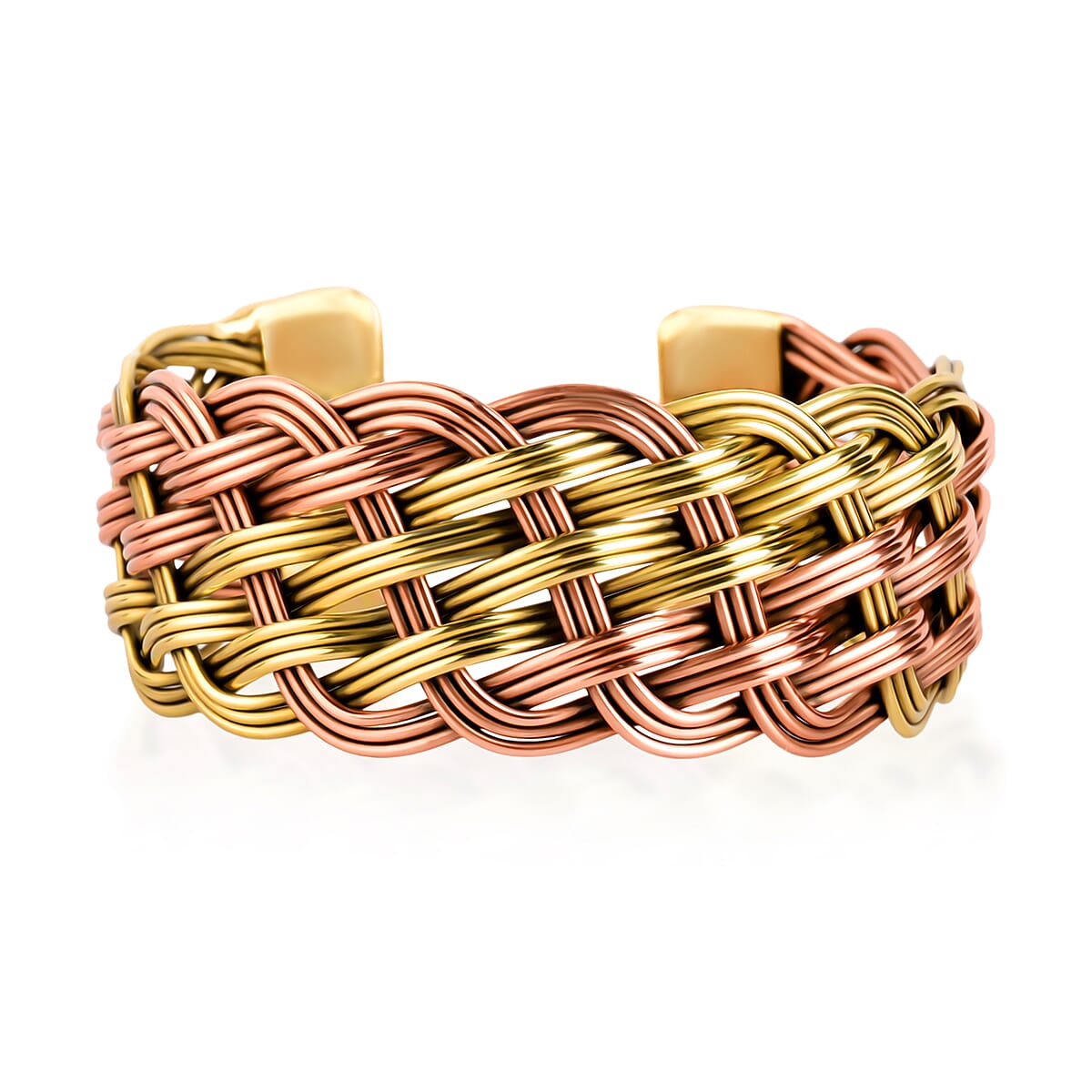 Handmade Criss Cross Cuff Bracelet in Goldtone and Rosetone (7In)