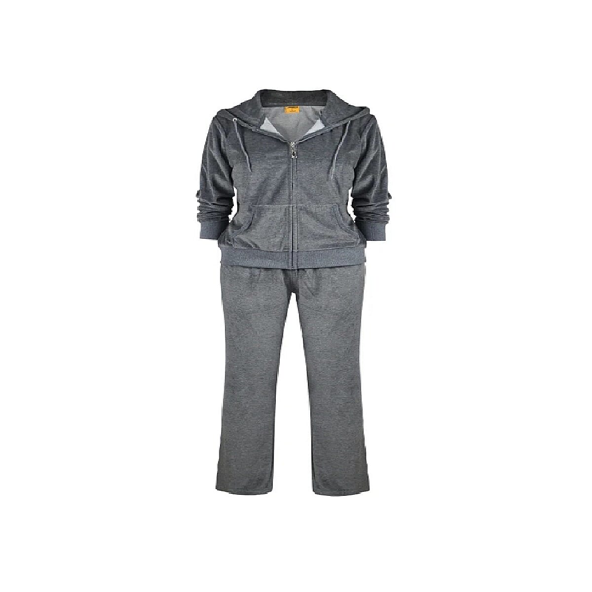 Hanton Gray Women's 2 Piece Velvet Sweatshirt with Pant - M