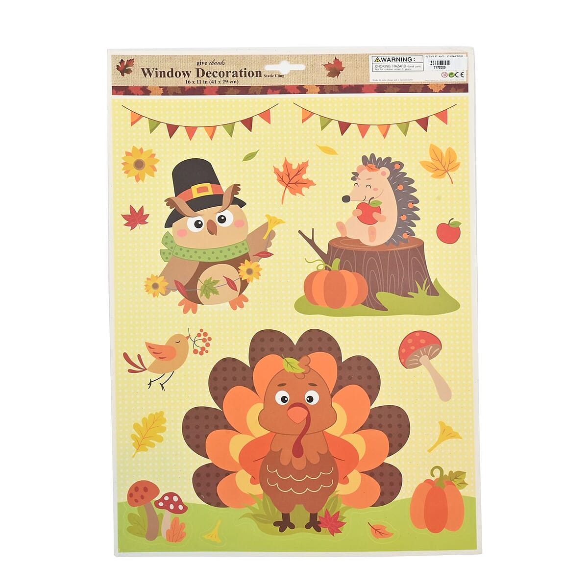 Harvest Window Cling (Turkey, Owl, Porcupine) | Custom Window Clings | Static Cling Stickers