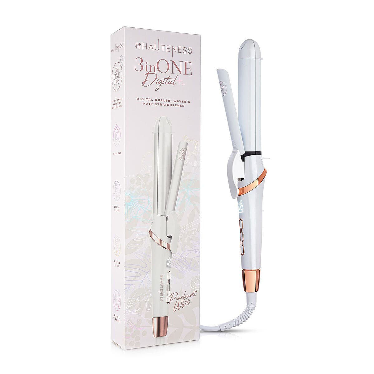 Hauteness 3 in 1 Multistyler Flat Iron & Curling System - White Pearlescent