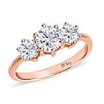 Heart and Arrows Cut Moissanite 1.75 ctw Trilogy Ring in Vermeil RG Over Sterling Silver, Three Stone Engagement Ring For Women (Size 6.0)
