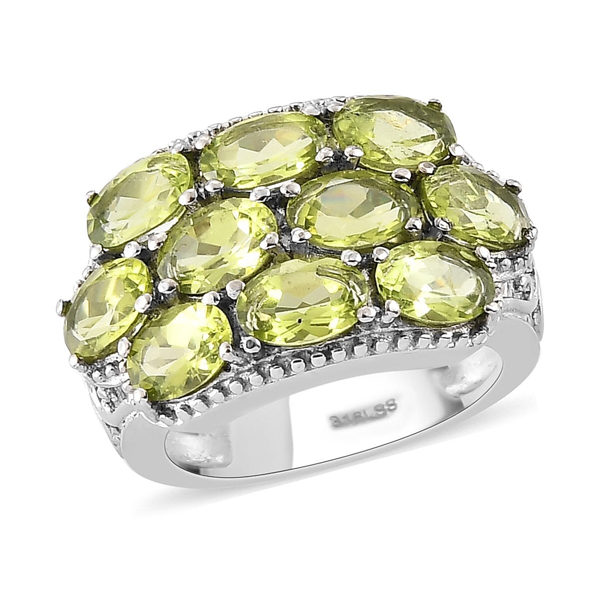 Hebei Peridot 4.85 ctw Ring in Stainless Steel (Size 5.0)