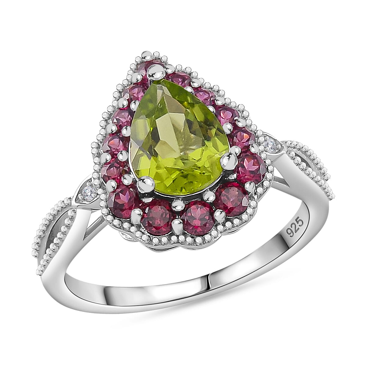Hebei Peridot and Multi Gemstone 2.60 ctw Majestic Wall Ring in Rhodium Over Sterling Silver (Size 9.0)