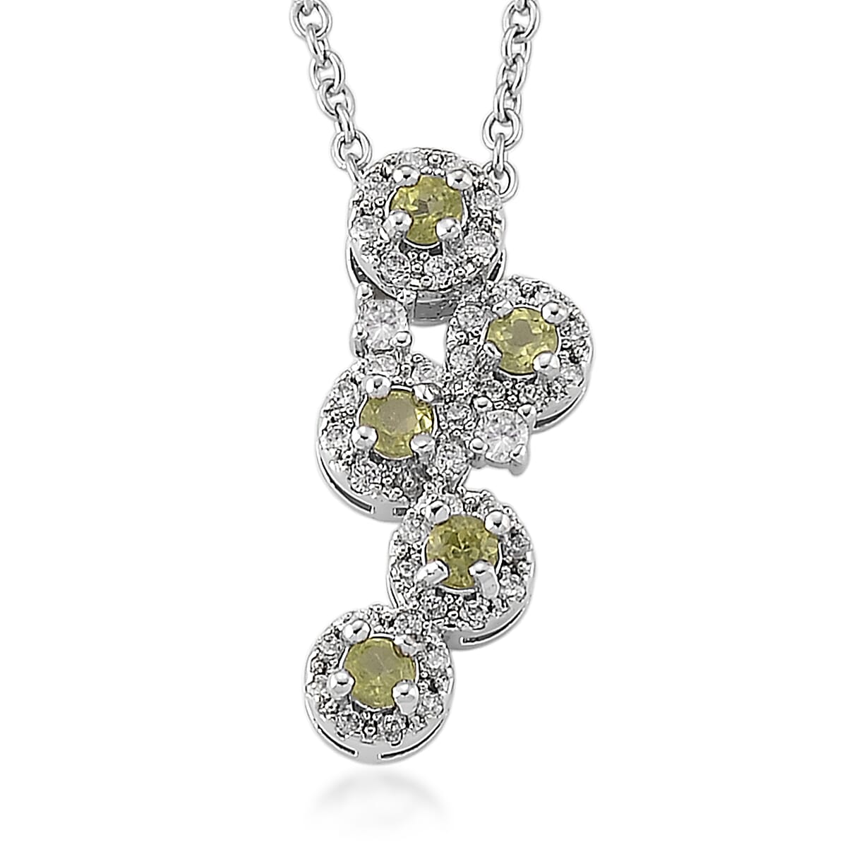 Hebei Peridot and Simulated Diamond 10.00 ctw Pendant in Silvertone with Stainless Steel Necklace 20 Inches
