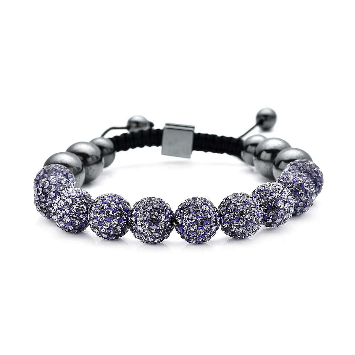Hematite and Amethyst Color Austrian Crystal Shamballa Adjustable Beaded Bracelet