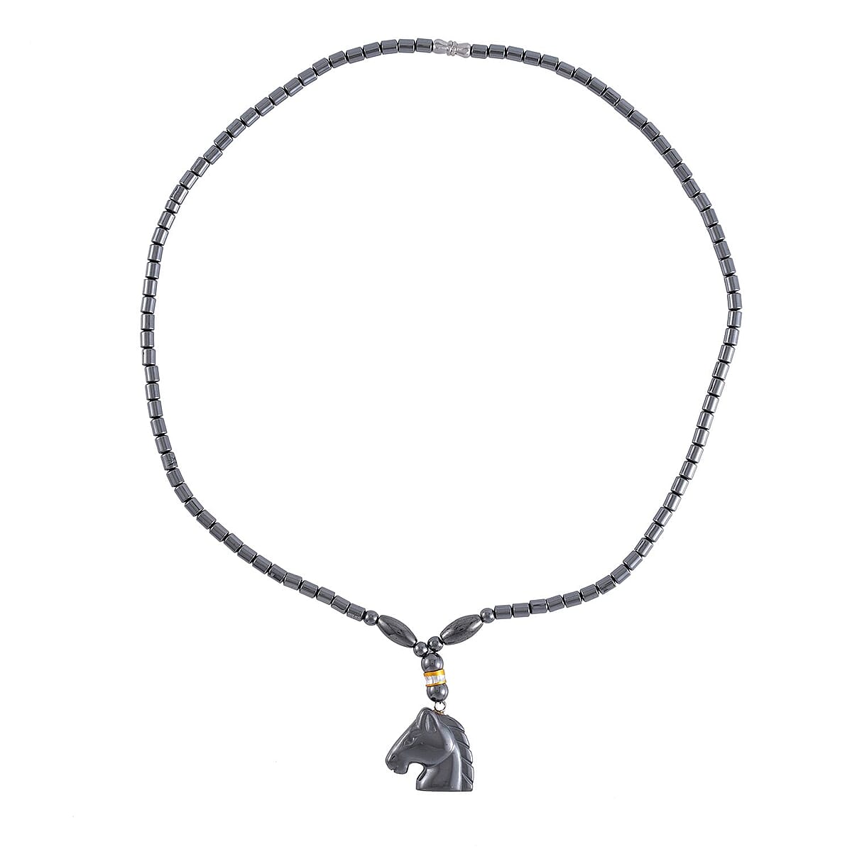 Hematite Horse Shape Pendant with Beaded Necklace 20 Inches in Dualtone 100.00 ctw