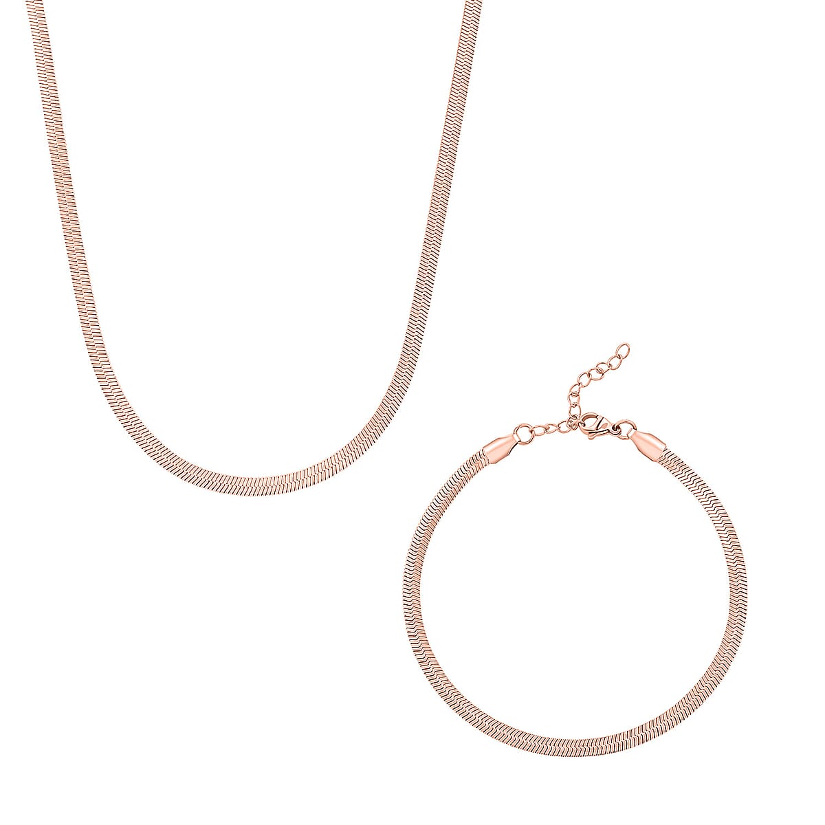 Herringbone Chain Bracelet (8.50In) and Necklace (24 Inches) in ION Plated RG Stainless Steel