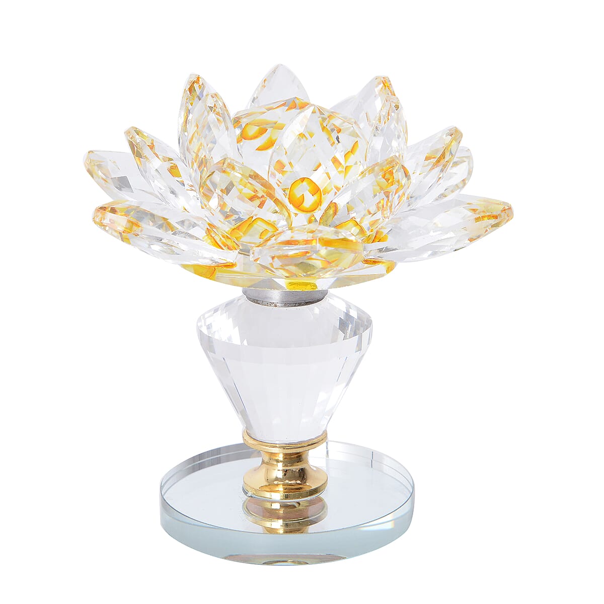 Home Decor Yellow Crystal Decorative Rotating Lotus Flower (3.5 in)