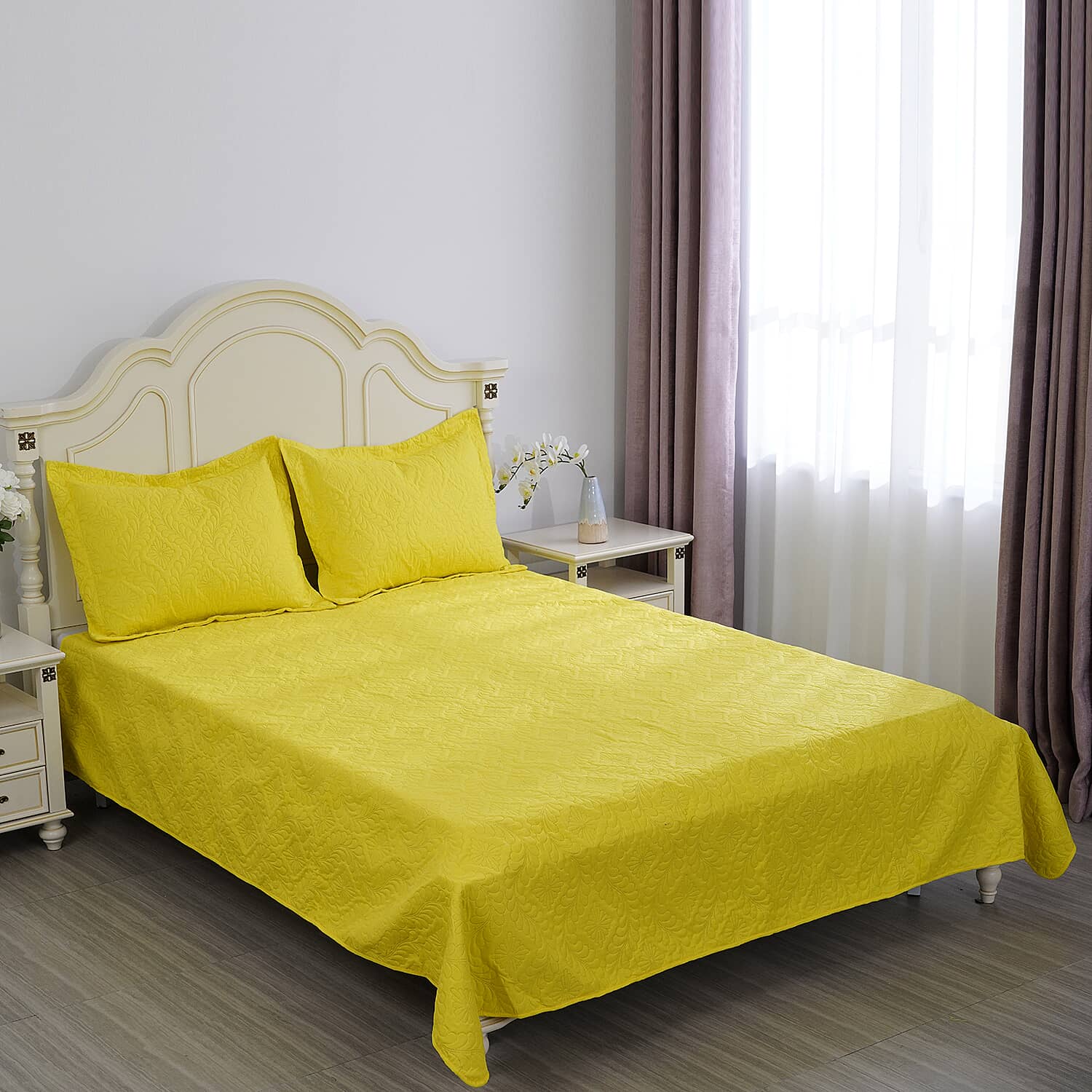 Homesmart 3 Pcs Solid Yellow Pinsonic Quilt Bedding Set - King Size