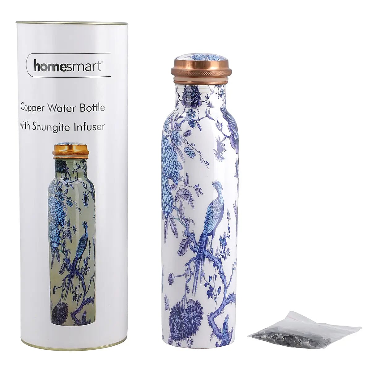 HOMESMART Bird Printed Solid Copper Bottle with Elite Shungite and Copper Infuser 33.81 oz , Copper Water Bottle , Infused Bottle , Infuser Water Bottle , Water Infuser