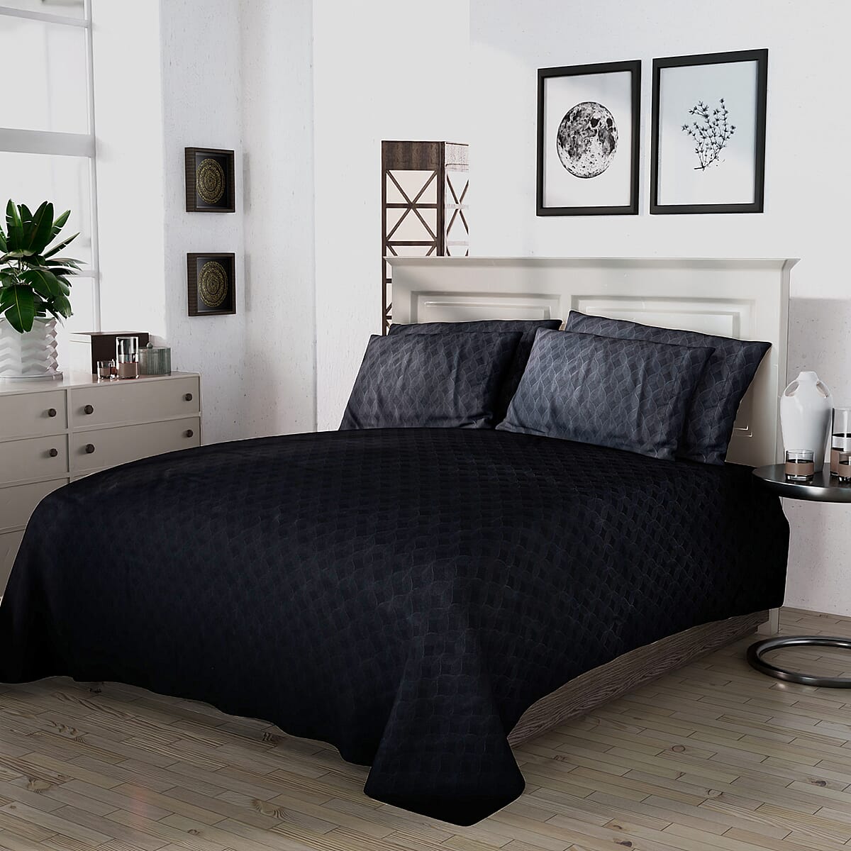 HOMESMART Black Embossed 6pcs Polyester Sheet Set - King , Bed Sheets , Fitted Sheet , Bed Sheet Set , Microfiber Sheets