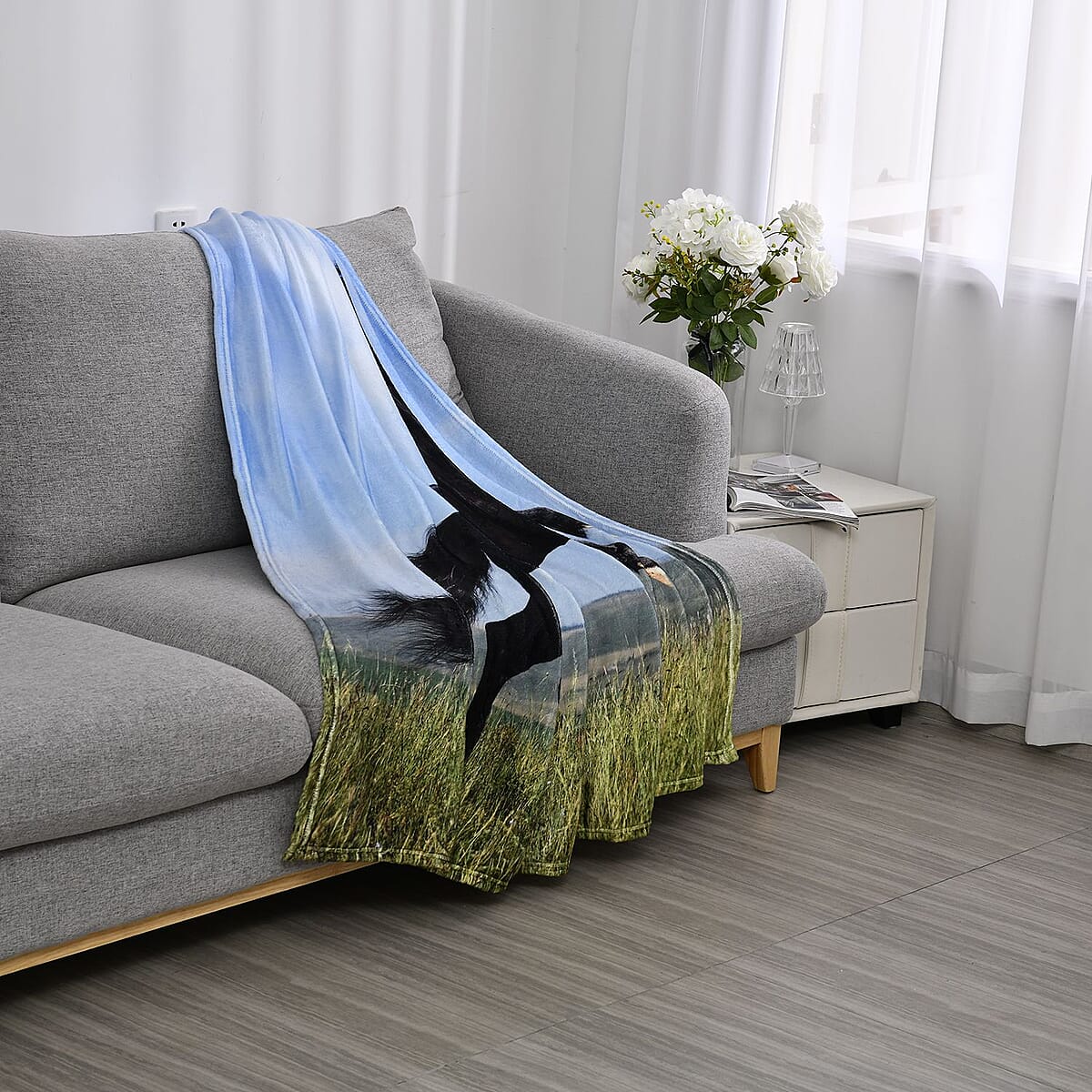 Homesmart Black Horse Digital Print Pattern Flannel Blanket