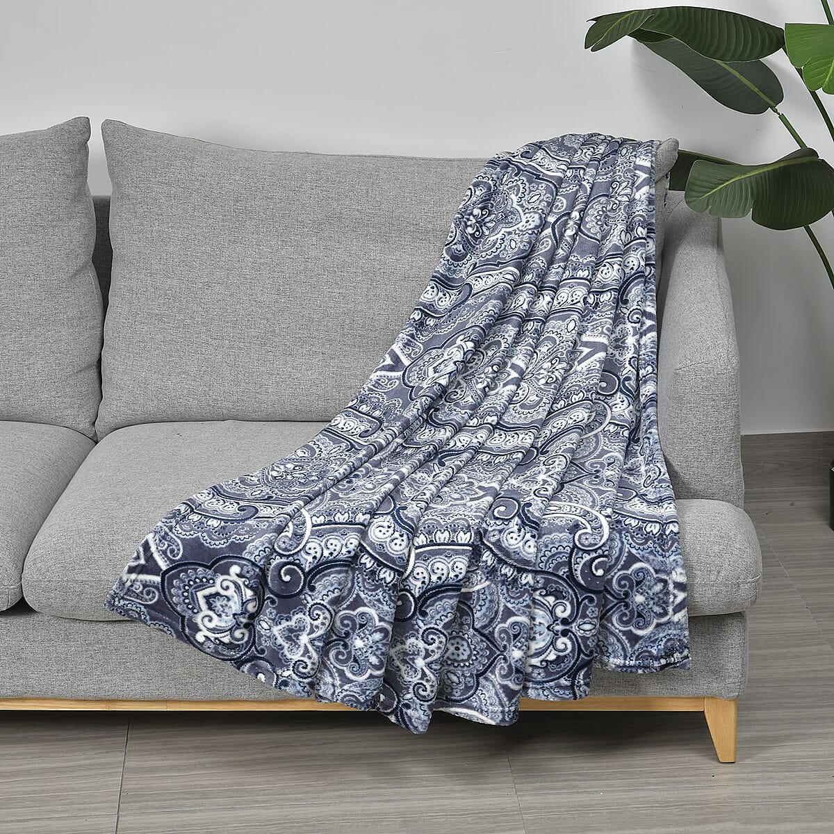 Homesmart Blue Intricate Ethnic Pattern Flannel Single Layer Blanket , Polyester Printing Blanket , All Weather Trip Blanket , Spring Throw Blanket