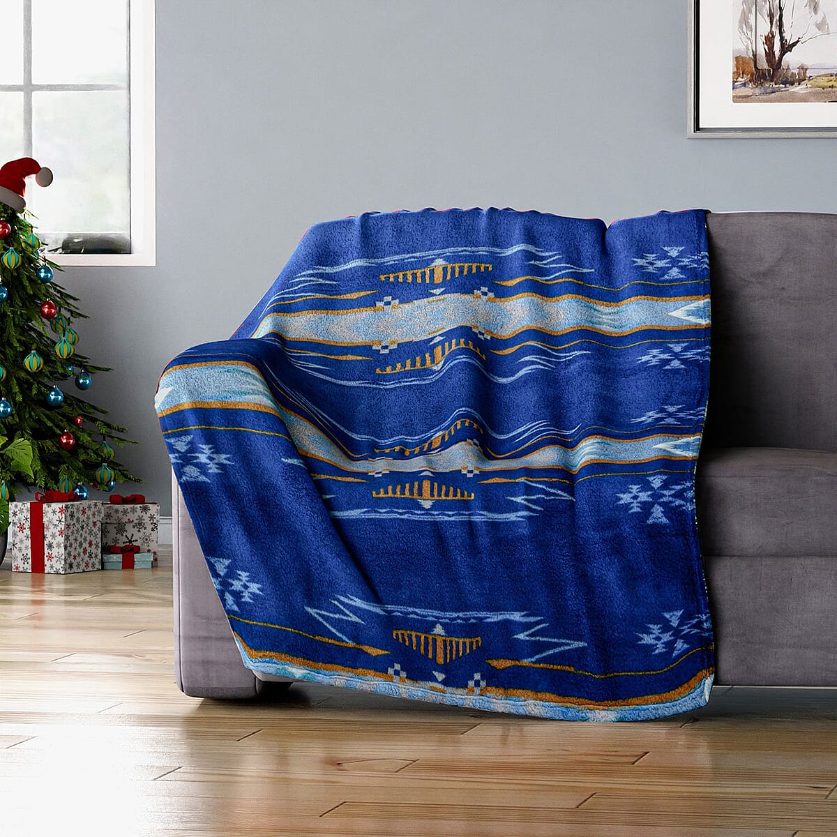 Homesmart Blue Tribal Print Pattern Single Layer Sherpa Fleece Blanket, Lightweight Throw Blanket 78 X 59 Inches