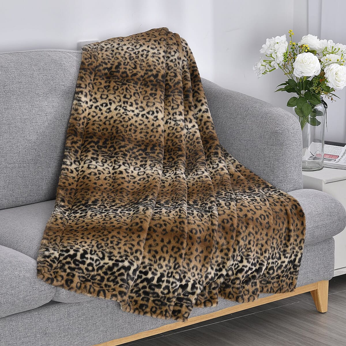 Homesmart Brown Stripe & Leopard Pattern Microfiber, Faux Rabbit Fur Layer Reversible Blanket
