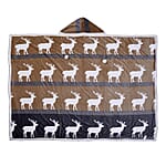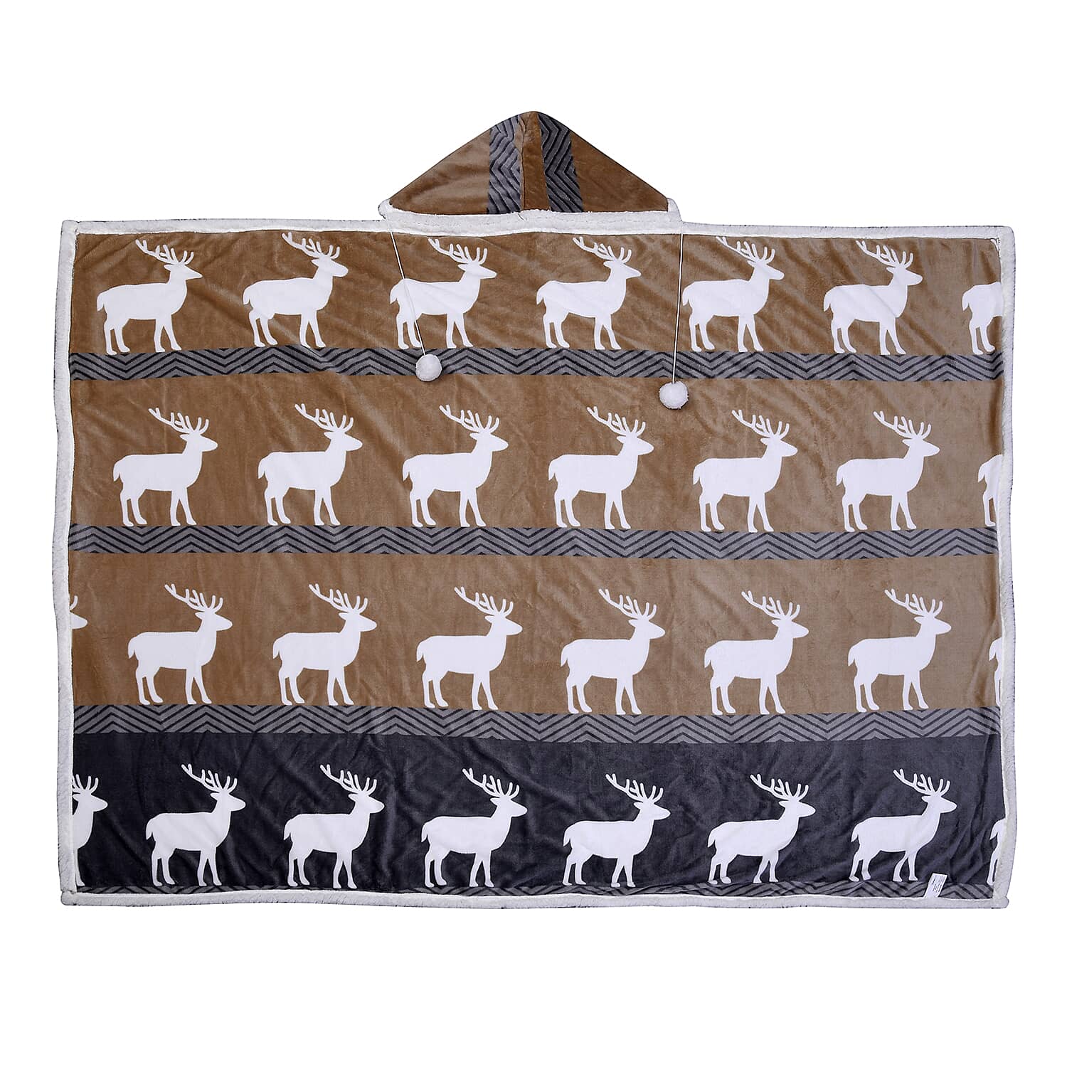 Homesmart Deer Print Pattern Polyester and Sherpa Hoodie Blanket with Pom Pom