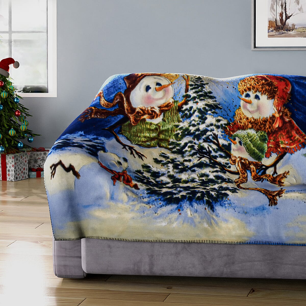 Homesmart Fleece X'mas Two Snowman and Christmas Tree Pattern Photo Print Blanket
