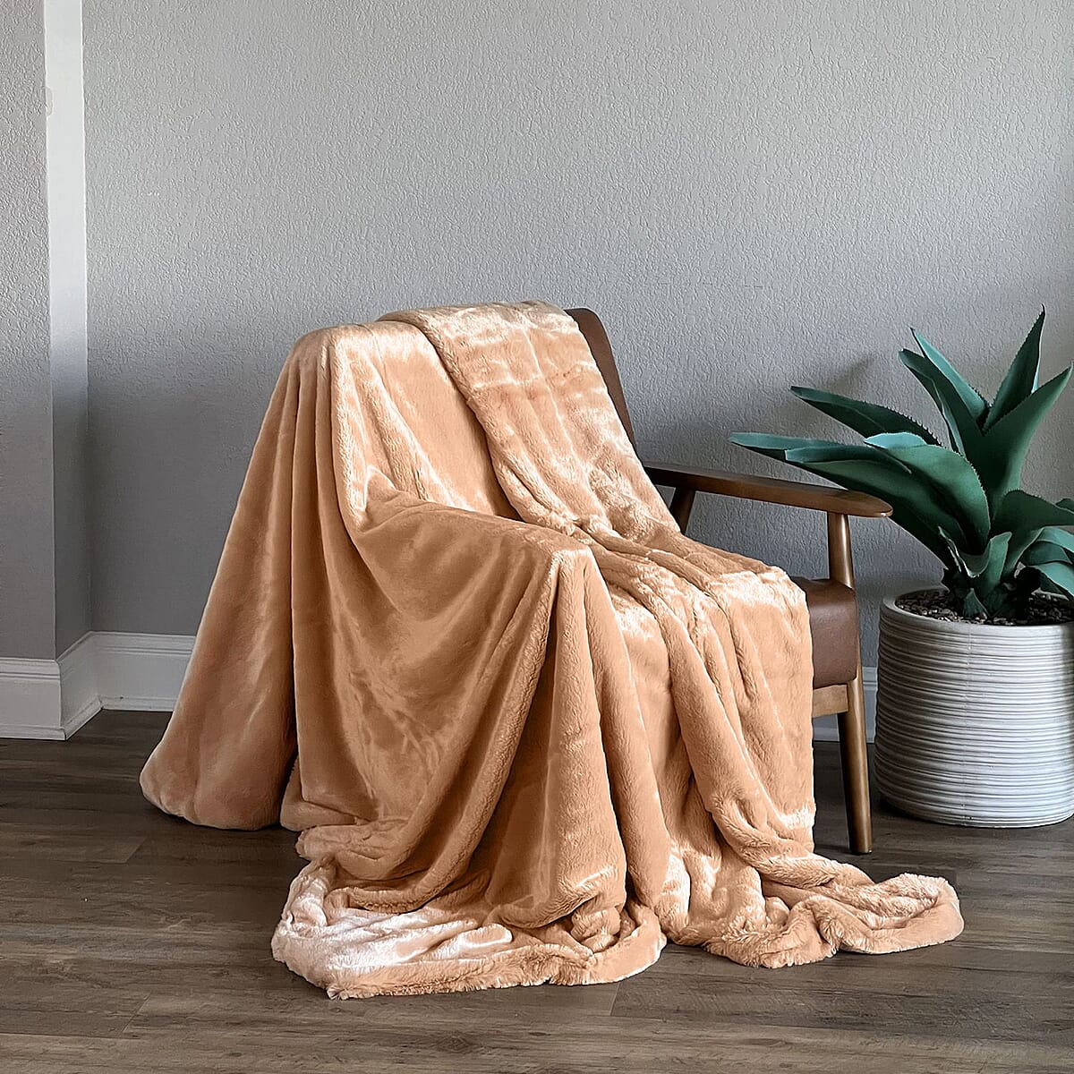 Homesmart Golden Brown Stock Solid Double Layers Rabbit Hair Throw
