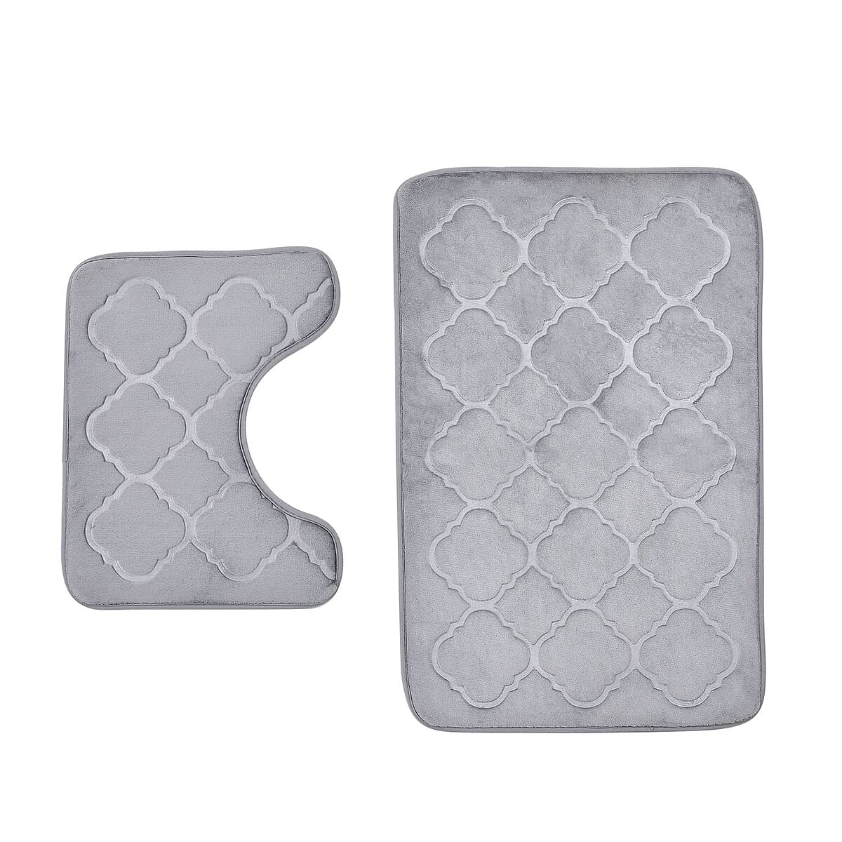 Homesmart Gray Embossed Flannel Non-Woven Anti Slip Dot Backing Bath Mat and Contour Toilet Mat, Anti-Skid Quick Drying Handwash Bath Mat, Non Slip Bathroom Rug