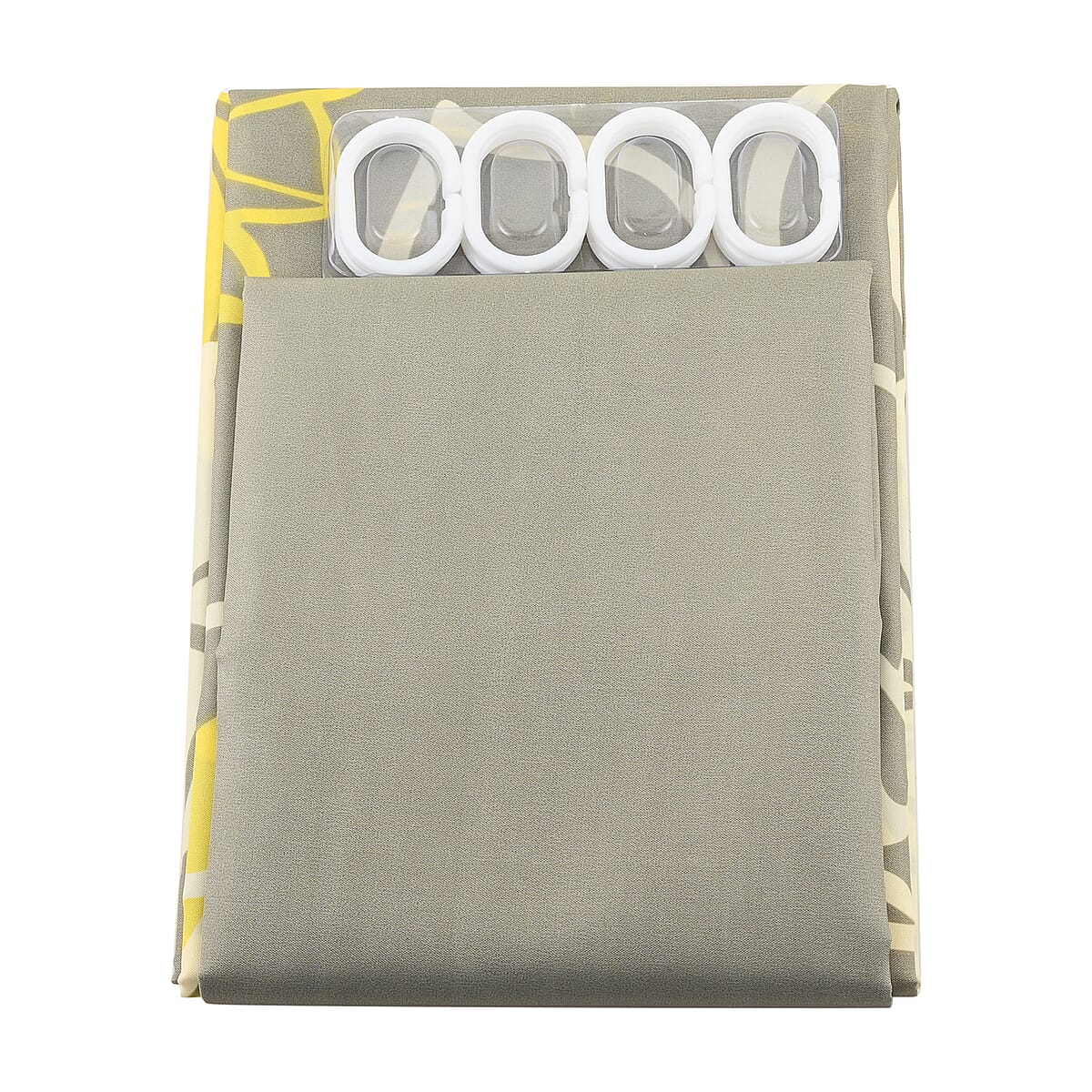HOMESMART Grey with Yellow & White Floral Pattern 100% Polyester Shower Curtain with 12 Hooks