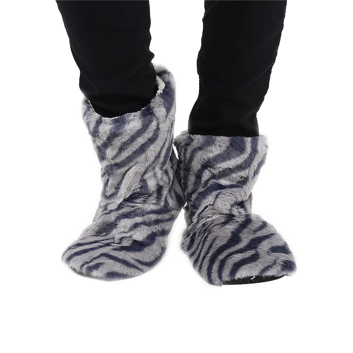 Homesmart Grey Zebra Print Faux Fur Sherpa Bootie Set of 2 Slippers (Women's Size 5-10)