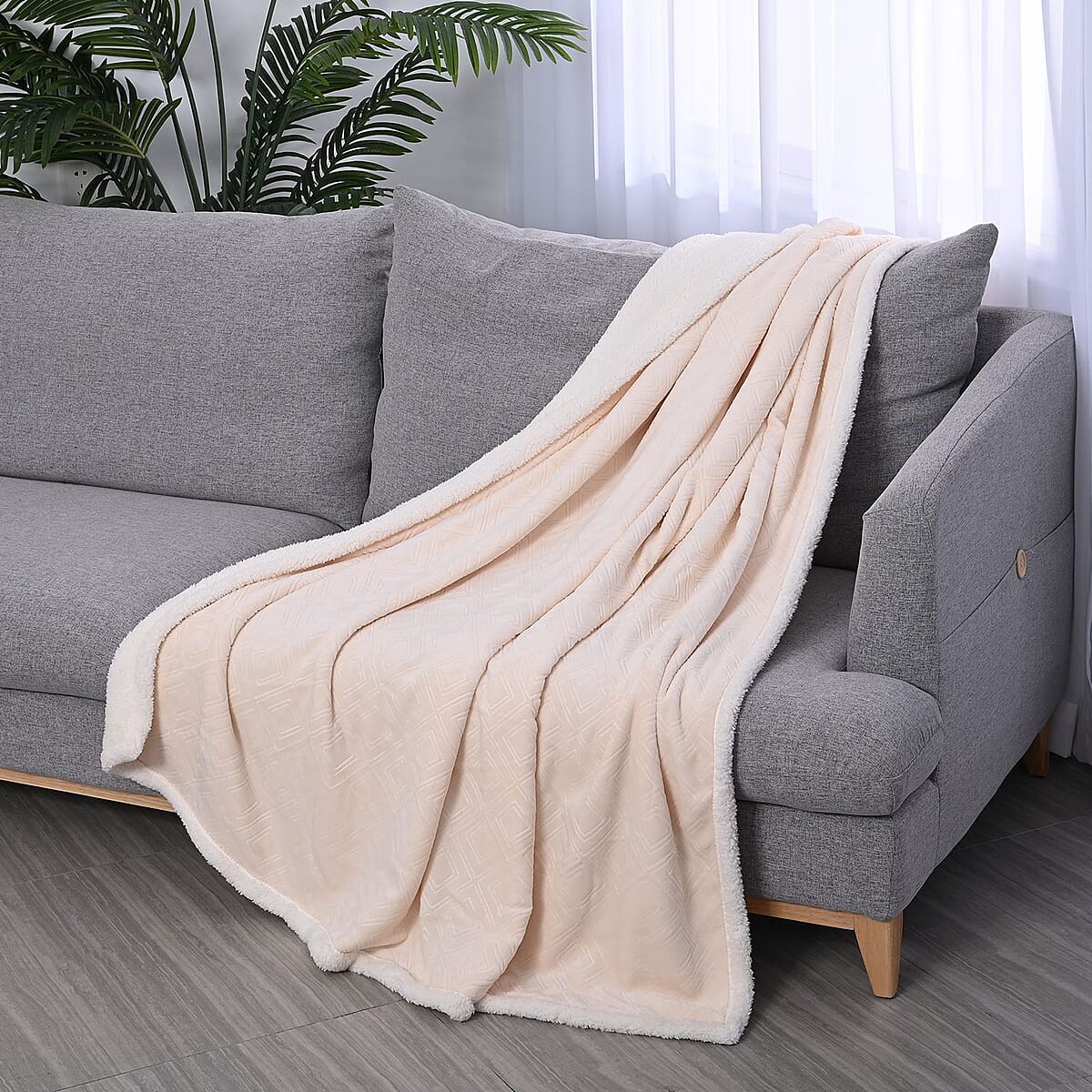 Homesmart Ivory Geometric Embossed Two Sided Sherpa and Plush Blanket